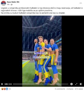 U jednom videu mogu se vidjeti momci u izazovnim dresovima u bojama ukrajinske zastave kako izlaze na teren. Zanimljivo je to što svaki od njih nosi visoke potpetice. Objavu prate navodi: (arhivirano: ovdje)