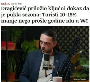 Dragićević priložio ključni dokaz da je pukla sezona: Turisti 10-15% manje nego prošle godine idu u WC