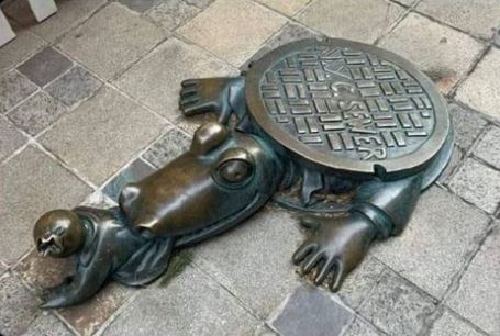 Instalacija na kojoj se može nazrijeti krokodil koji vuče ljudsku figuru sa znakom dolara na glavi nazad u kanalizaciju zapravo je nastala na osnovu mita da se krokodili nalaze u njujorškom podzemlju. Priča ide nazad do početka ‘20-og vijeka. Danas Njujork, pored Oternesovog, ima i još jednu, veću statuu krokodila, kako bi se odala pošta mitu.