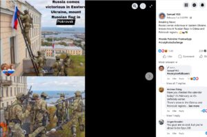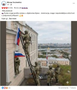 Na Fejsbuku se pojavila fotografija, na kojoj se navodno mogu vidjeti ruski vojnici kako podižu rusku zastavu u Kijevu. Prate je navodi: (arhivirano: ovdje)