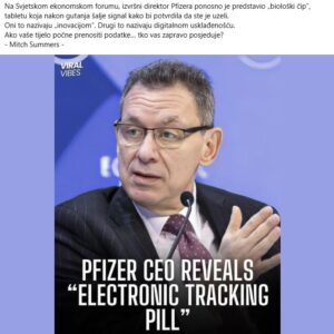 Na Svjetskom ekonomskom forumu, izvršni direktor Pfizera ponosno je predstavio „biološki čip“, tabletu koja nakon gutanja šalje signal kako bi potvrdila da ste je uzeli. Oni to nazivaju „inovacijom“. Drugi to nazivaju digitalnom usklađenošću. Ako vaše tijelo počne prenositi podatke… tko vas zapravo posjeduje?