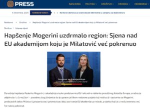 “ Hapšenje Mogerini uzdrmalo region: Sjena nad EU akademijom koju je Milatović već pokrenuo”.