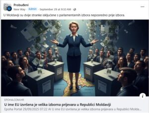 “U Moldaviji su dvije stranke isključene s parlamentarnih izbora neposredno prije izbora. Smatrane su previše proruskima. Istovremeno, čelnici EU obećavaju milijarde pomoći. Izbori su očito “demokratski” samo ako je dopušteno sudjelovanje samo “100% prorežimskim” strankama”.