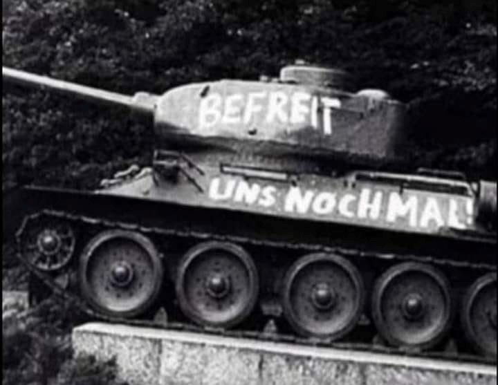 Ovakav status se u poslednje vrijeme čita na društvenim mrežama a pojedini uz objavu prilažu i crno-bijelu fotografiju. Na njoj možemo da primijetimo vidjeti tenk i njemačke riječi ,,Befreit uns nochmal” u prevodu ,,Oslobodite nas ponovo”. Dok iznad pojedinih fotografija piše ,,Zossen am Russendenkmal”, iliti ,,ruski memorijal Zosenu”.