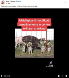 Snimak, na kojem se može vidjeti nekoliko minijaturnih vojnika i dvije ogromne svinje, prate navodi: (arhivirano: ovdje)