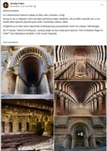 “Kondana pećine. Vjeruje se da je ovaj pećinski kompleks isklesan ručno koristeći primitivne alate, međutim, vrlo je teško zamisliti da su ova remek djela napravili pećinski ljudi vješti u korištenju čekića i dleta. Očigledno je to bila nama nepoznata civilizacija koja je posjedovala visok nivo znanja i tehnologije”, piše, između ostalog, u objavama.