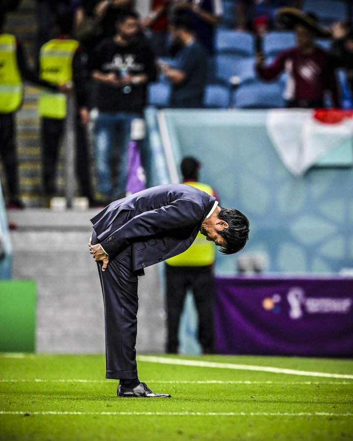 „Menadžer Japana Hadžime Morijasu poklonio se u znak zahvalnosti navijačima koji su putovali čak do Katara da podrže svoj tim“, objavio je ESPN na Fejsbuku i na Tviteru.