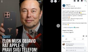 Tako se nedavno društvenim mrežama proširila vijest da je Ilon Mask lansirao Tesla Pi telefon (“Tesla Pi Phone”) sa revolucionarnim funkcijama: solarno punjenje, direktna veza sa Starlinkom, integracija sa Teslinim automobilima, pa čak i mogućnost rudarenja kriptovaluta. Naslovi sugerišu da je iPhone “na rubu iščeznuća preko noći”.