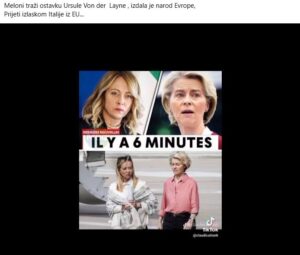 Novi narativ glasi da će za Britanijom i Italija, a da ideju zagovara premijerka, Đorđa Meloni. U jednom postu se kaže: (arhivirano: ovdje)