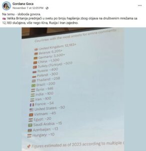 Velika Britanija prednjači u svetu po broju hapšenja zbog objava na društvenim mrežama sa 12,183 slučajeva, više nego Kina, Rusija i Iran zajedno.