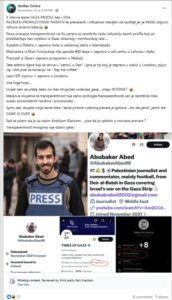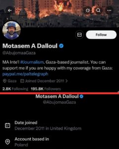 Jedan od njih bio je novinar Motasem A. Dalul, koji izvještava o ratu u Gazi. Skrinšot njegovog naloga se nalazi u analiziranoj objavi.