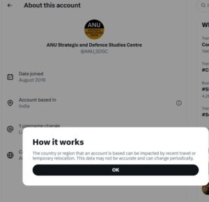 Među drugim slučajevima kod kojih je navedena pogrešna lokacija je i nalog Australijskog nacionalnog univerziteta za strateške odbrambene studije kojem je navedeno (arhivirano) da je baziran u Indiji.