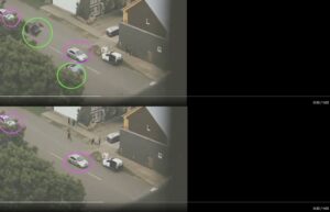 “Na primjer, na sastavljenoj slici ispod vidimo dva bijela automobila (označena rozim krugovima) parkirana na sred puta, a da pritom nekako ne ometaju okolni saobraćaj. Drugi automobili – u pokretu – (označeni zelenim krugovima) pokazuju “magiju” promjene oblika, pretvarajući se u nejasne sjenke u trenutku vožnje. U drugom slučaju, automobil “izranja” iz vode i penje se na krov sa nagibom, što nije realan obrazac kretanja automobila”.