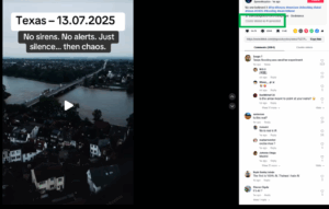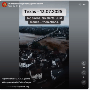 Pažnju nam je privukao video objavljen na jednoj Fejsbuk stranici (arhivirano), koji navodno prikazuje nedavne poplave u Teksasu: