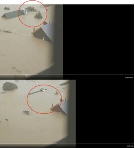 Iako je video snimljen u time-lapse formi, odnosno prikazuje ubrzan protok vremena, očigledno je da je u pitanju AI, što se može zaključiti na osnovu više detalja u snimku i načinu na koji bujica vode preplavljuje automobile, ljude, kuće.