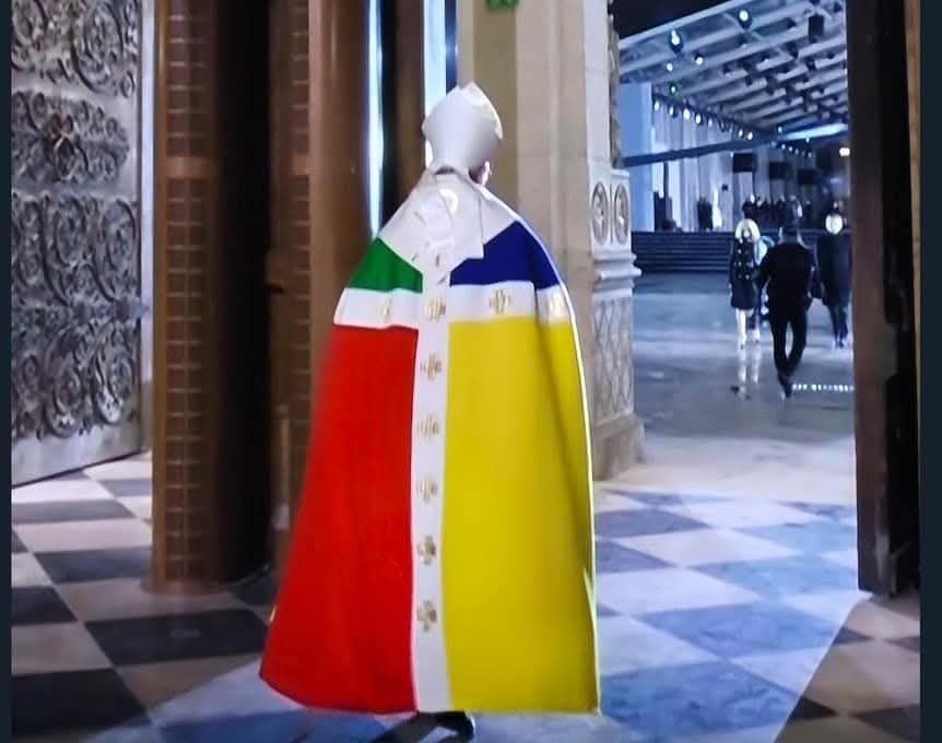 Dizajner odora Žan-Šarlu de Kastelbajaku pojasnio je da odabrane boje predstavljaju “snagu” i “ponovno rođenje vitalnosti duhovnosti”.