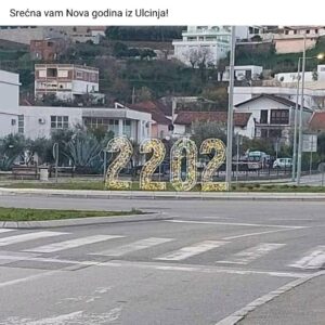 Portal Dan je prenio (arhivirano) 2021. godine i fotografiju novogodišne dekoracije u Ulcinju, na osnovu koje je jasno da se sa centralne, naprometnije pozicije u Ulcinjju vidi znak 2022.