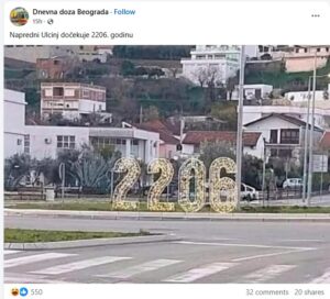 Ista ta fotografija, zabilježena iz identičnog ugla, ponovo je postala viralna ovog decembra, ali sa izmijenjenom cifrom „2206“. Očigledno je da je jednostavnom digitalnom intervencijom stare fotografije stvoren privid nove greške u dekorisanju grada.