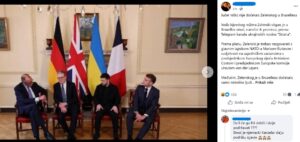 Takođe, nije tačno da je Zelenski nakon navodnog “ispaljivanja” u Briselu produžio za London. Prvo se u Londonu,sastao sa britanskim premijerom Kirom Starmerom, francuskim predsjednikom Emanuelom Makronom i njemačkim kancelarom, Fridrihom Mercom, a tek nakon toga je otišao za Belgiju.