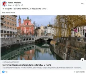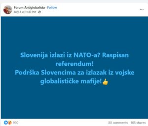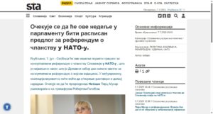 Ova vijest je propraćena tvrdnjom da je ujedno raspisan i referendum o izlasku Slovenije iz NATO saveza.