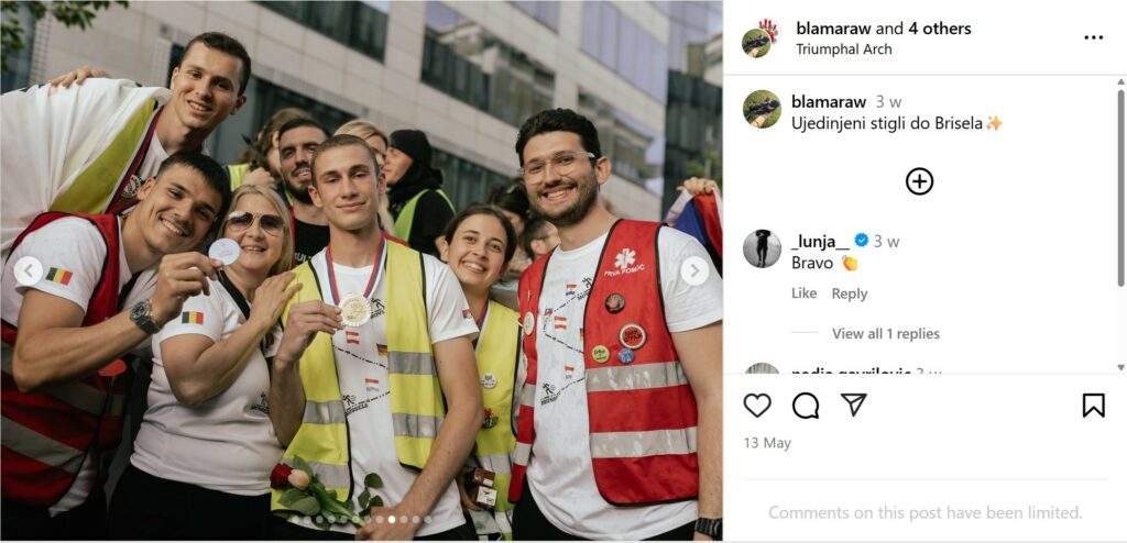 “Na osnovu dostupnih video snimaka i fotografija, uključujući i snimak Al-Džazire, može se jasno videti da su studenti nosili bele majice sa mapom trase maratona i simbolima zemalja kroz koje su prošli – Srbija, Hrvatska, Slovenija, Austrija, Nemačka, Francuska, Luksemburg i Belgija.
