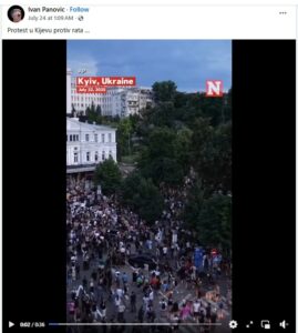 I u drugom videu (arhivirano) koji prikazuje okupljenu masu ljudi u Kijevu, autor objave tvrdi da protestuju protiv rata.