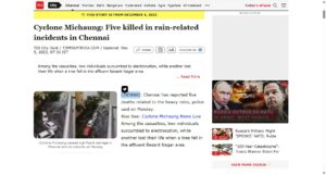 Times od India je objavio (arhivirano) tada fotografije istog prizora, uz informaciju da je u pitanju ciklon Michaung koji je pogodio grad Čenaj. U tom periodu zabilježene izuzetno obilne padavine, što je dovelo do velikih poplava i značajne materijalne štete u gradu i okolini. Osim toga, prema pisanju tog medija, pet osoba je izgubilo život u incidentima povezanim sa jakom kišom.