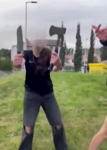 Riječ je o šokantnim prizorima iz stvarnog života! Četrnaestogodišnja učenica iz škotskog Dundeeja mora se zaštititi i zaštititi svoju 12-godišnju sestru sjekirom i macolom od nametljivog migranta. S oružjem u rukama viče na muškarca koji snima da se drži podalje od nje i njene sestre: „Ne udaraj moju malu sestru, ona ima samo 12 godina!“