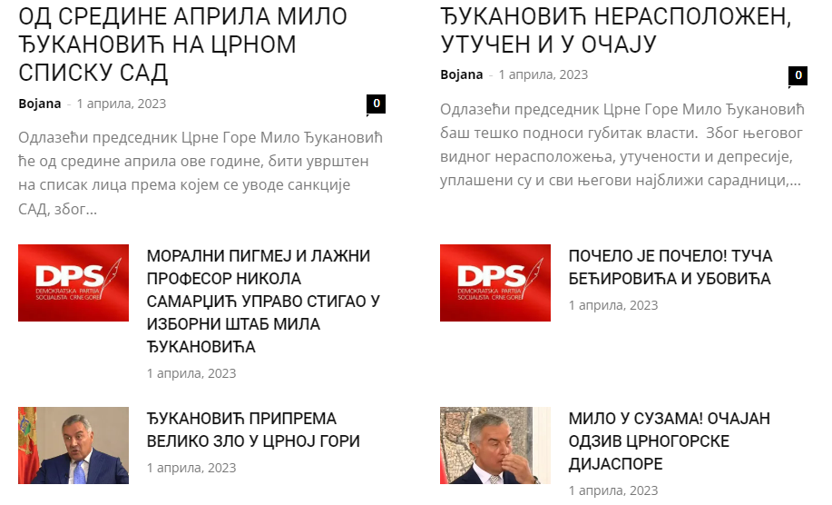 Dijelili su brojeve telefona funkcionera DPS-a, tvrdili su da je Đukanović „na putu za Ostrog“, da priprema veliko zlo u Crnoj Gori, starim fotografijama pokušali da ubijede čitaoce da je na granici kod Rožaja kolona automobila koja ulazi u Crnu Goru i koja dovozi glasače…